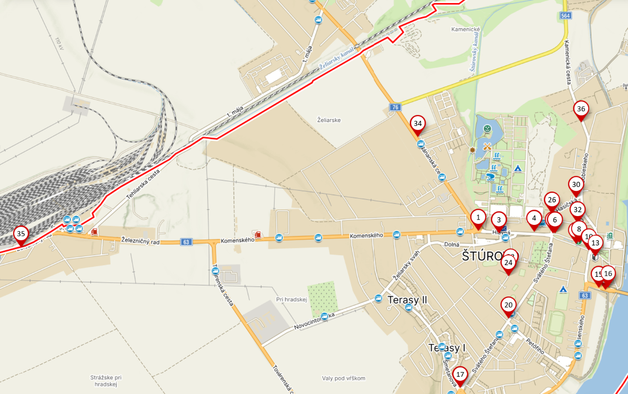 Umiestnenie, typ a záber nainštalovaných kamier kamerového systému mesta Štúrovo